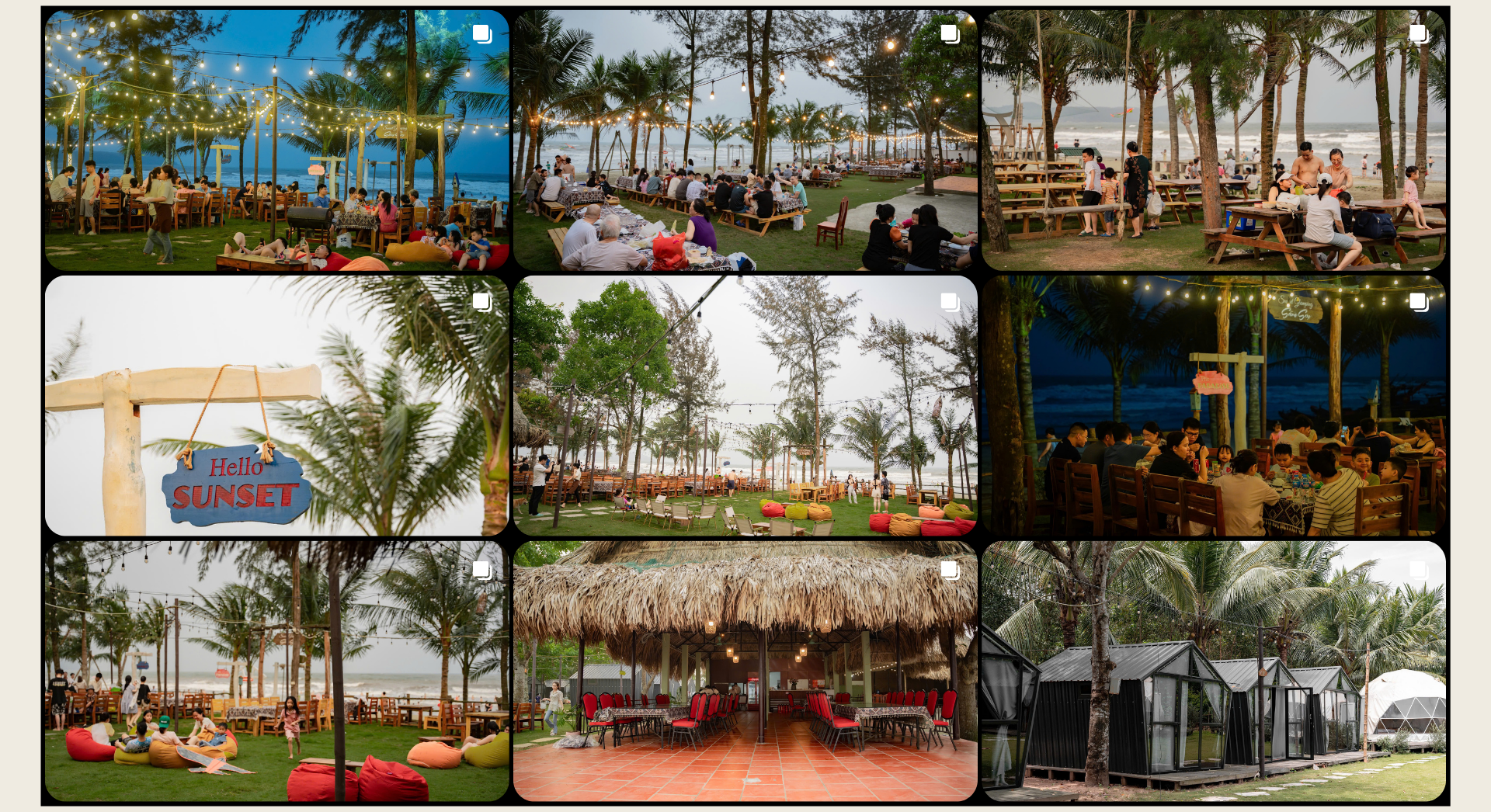 Xem thêmNhà hàng Sunset Glamping Sầm Sơn sở hữu không gian 100% view biển, nơi tiếng sóng rì rào và làn gió mát tạo nên khung cảnh thư giãn và lãng mạn. Với thiết kế gần gũi thiên nhiên nhưng vẫn sang trọng, nhà hàng là điểm đến lý tưởng để vừa thưởng thức hải sản tươi ngon, vừa ngắm nhìn hoàng hôn tuyệt đẹp trên biển.