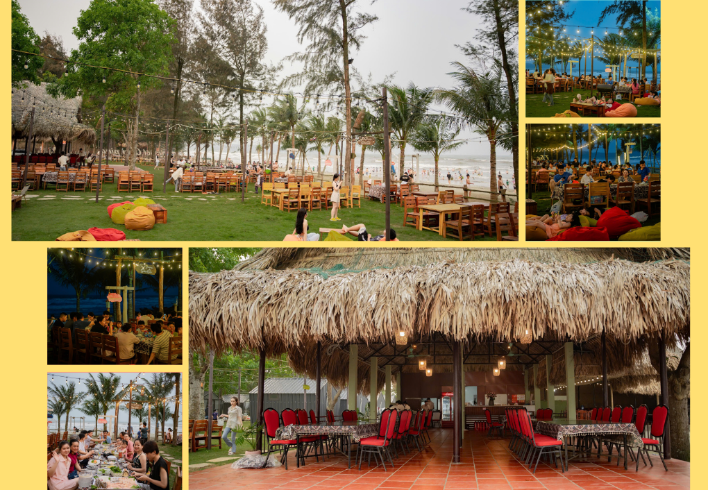 Không gian ăn uống 100% view biển: Thưởng thức hải sản trong tiếng sóng rì rào, ánh hoàng hôn đỏ rực, khiến mỗi bữa ăn trở thành một trải nghiệm đáng nhớ.